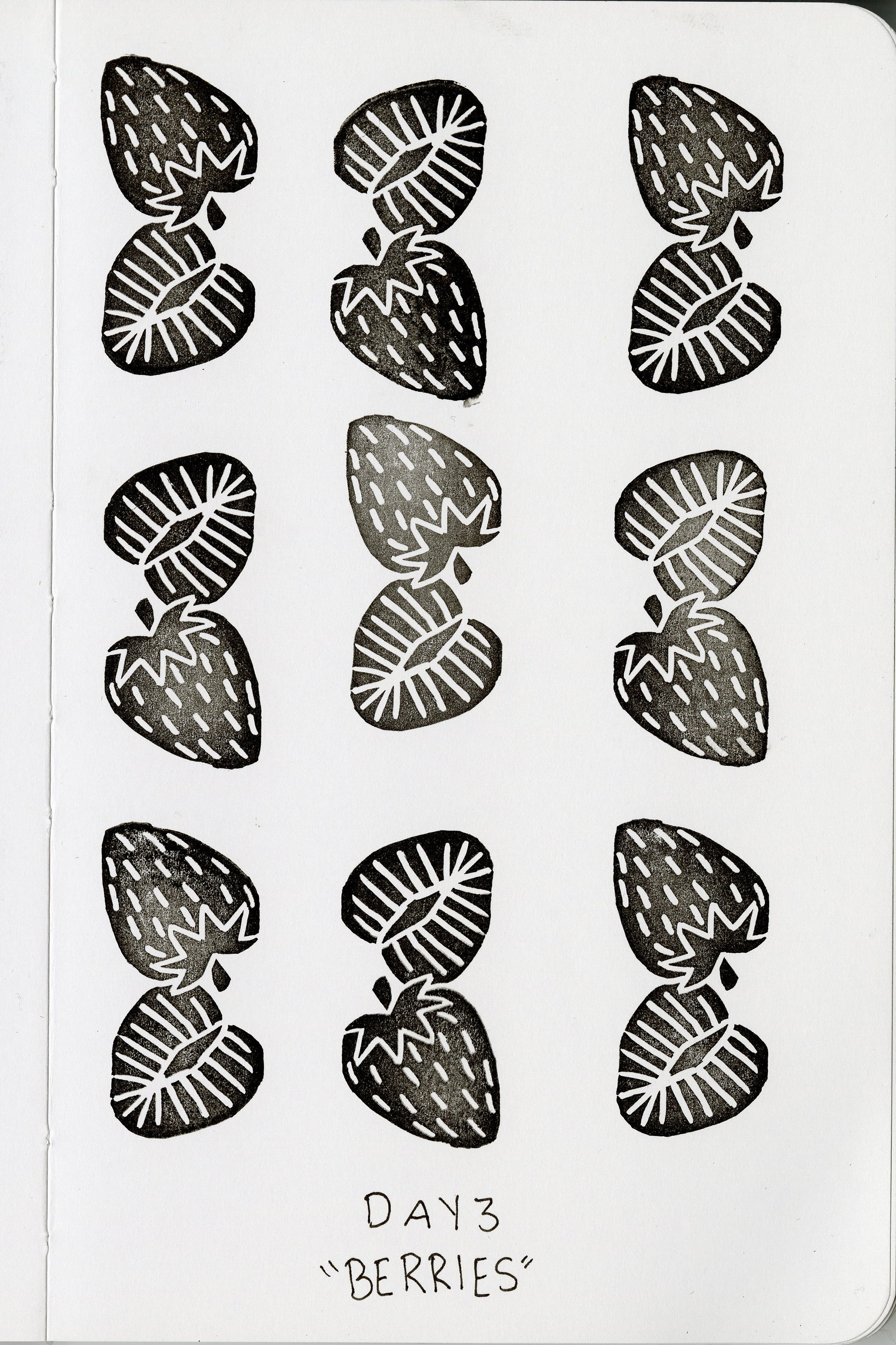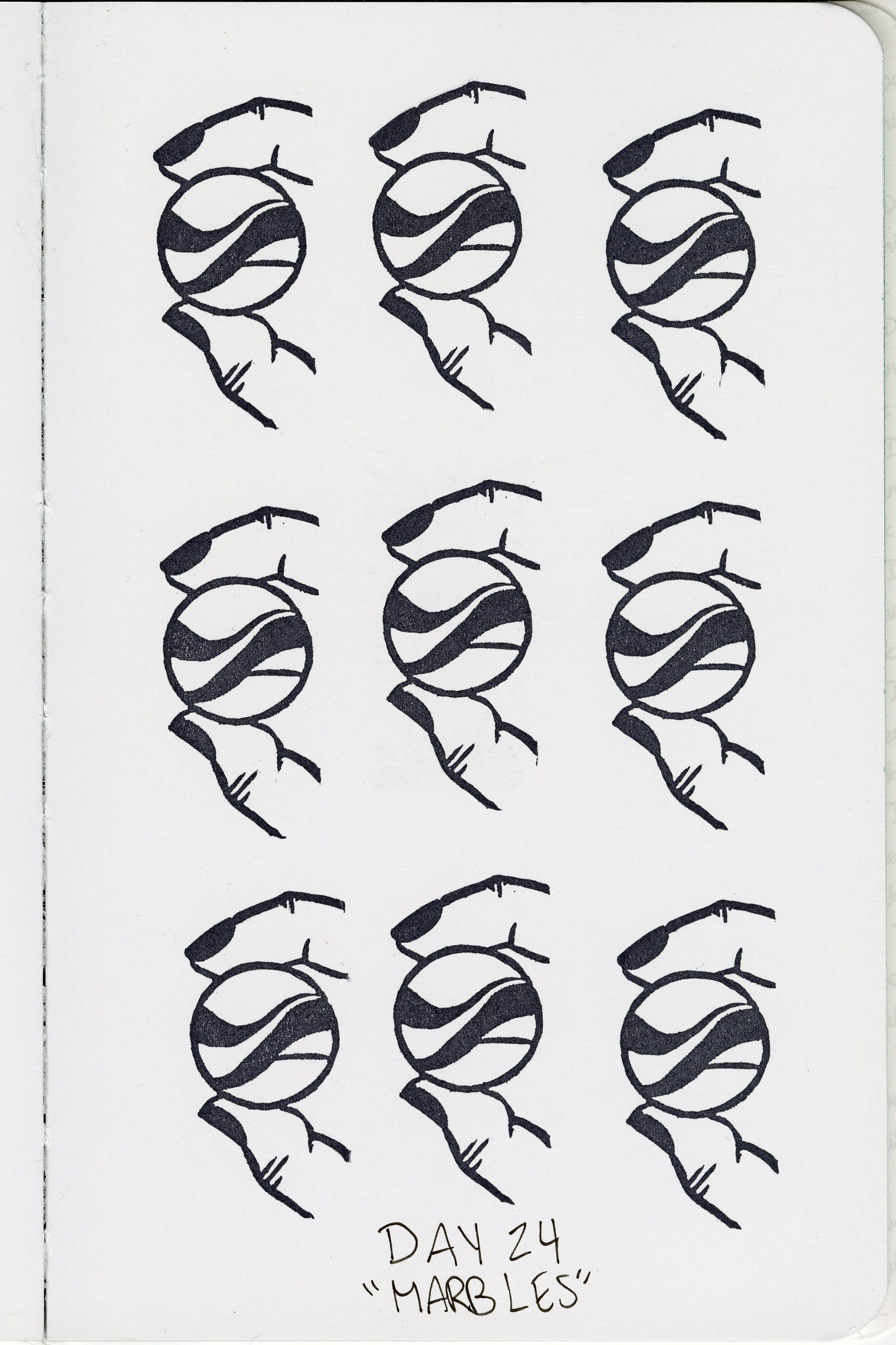 A miniature-sized print collection created using an eraser. One made forĀ each day in March.